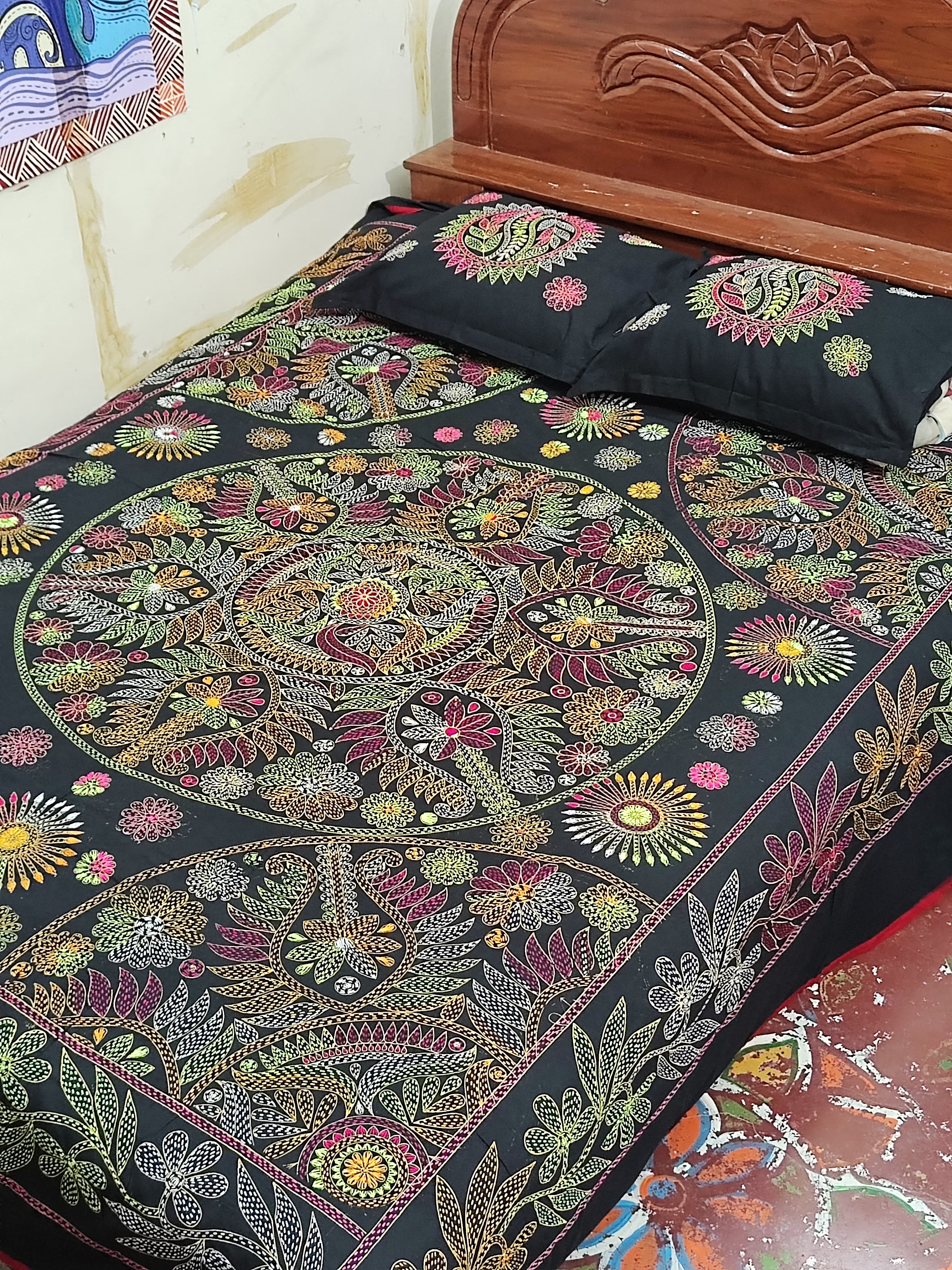 Hand Embroidered Cotton Bedcover Set