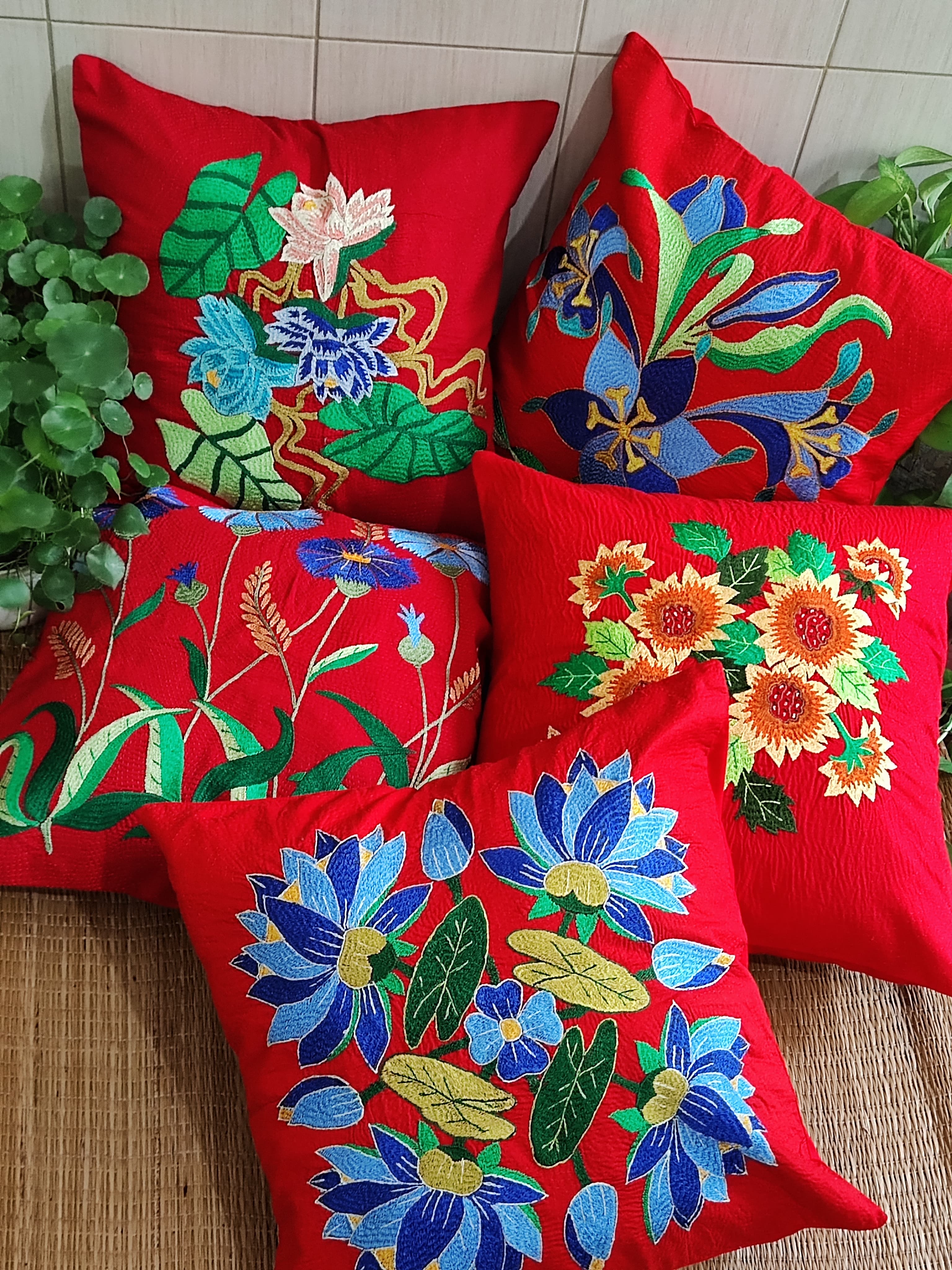 Handcrafted Floral Cushion Covers (set of 5-diffrent pattern)