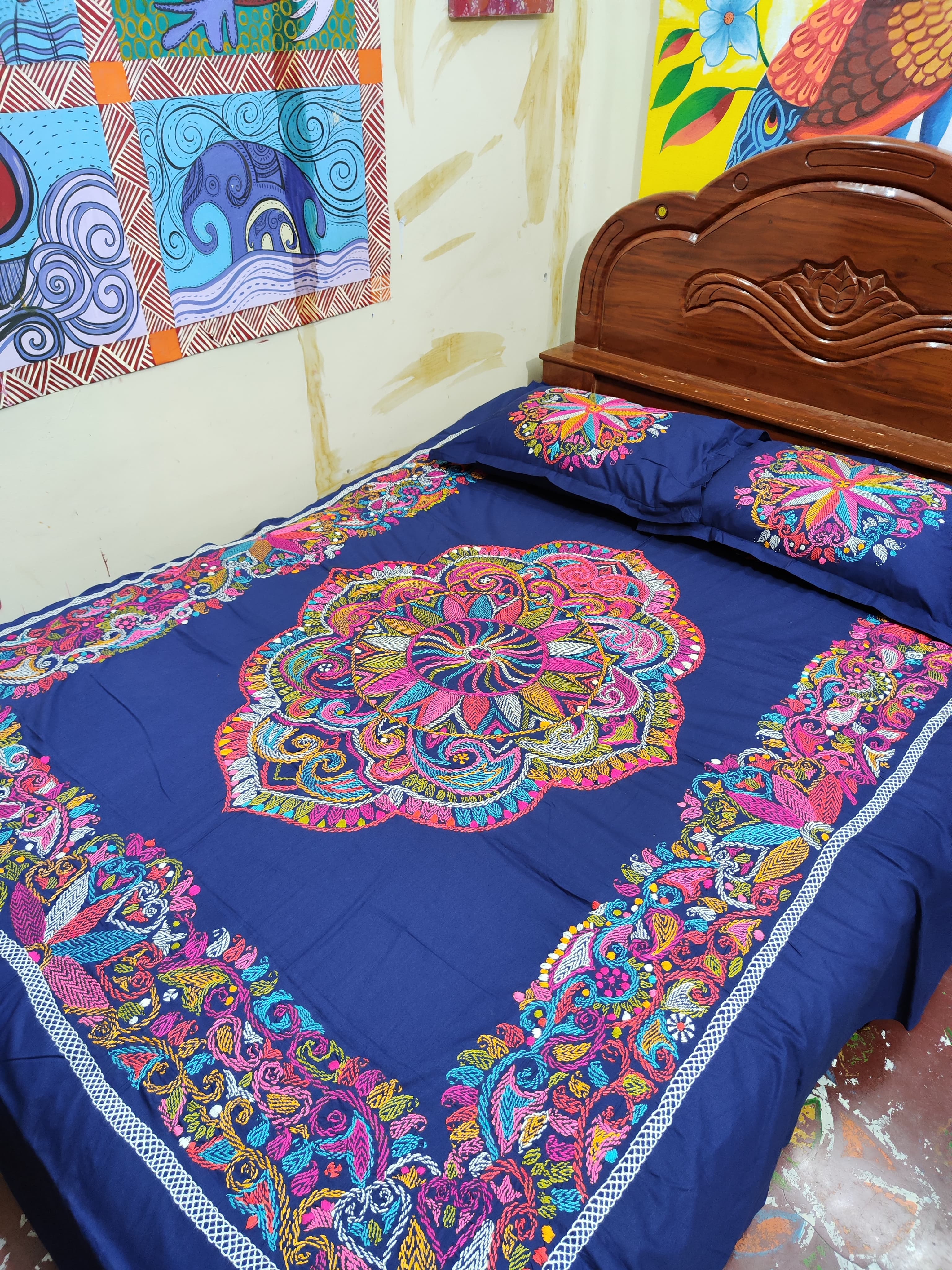 Vibrant Mandala Print Royal Blue Bedsheet Set