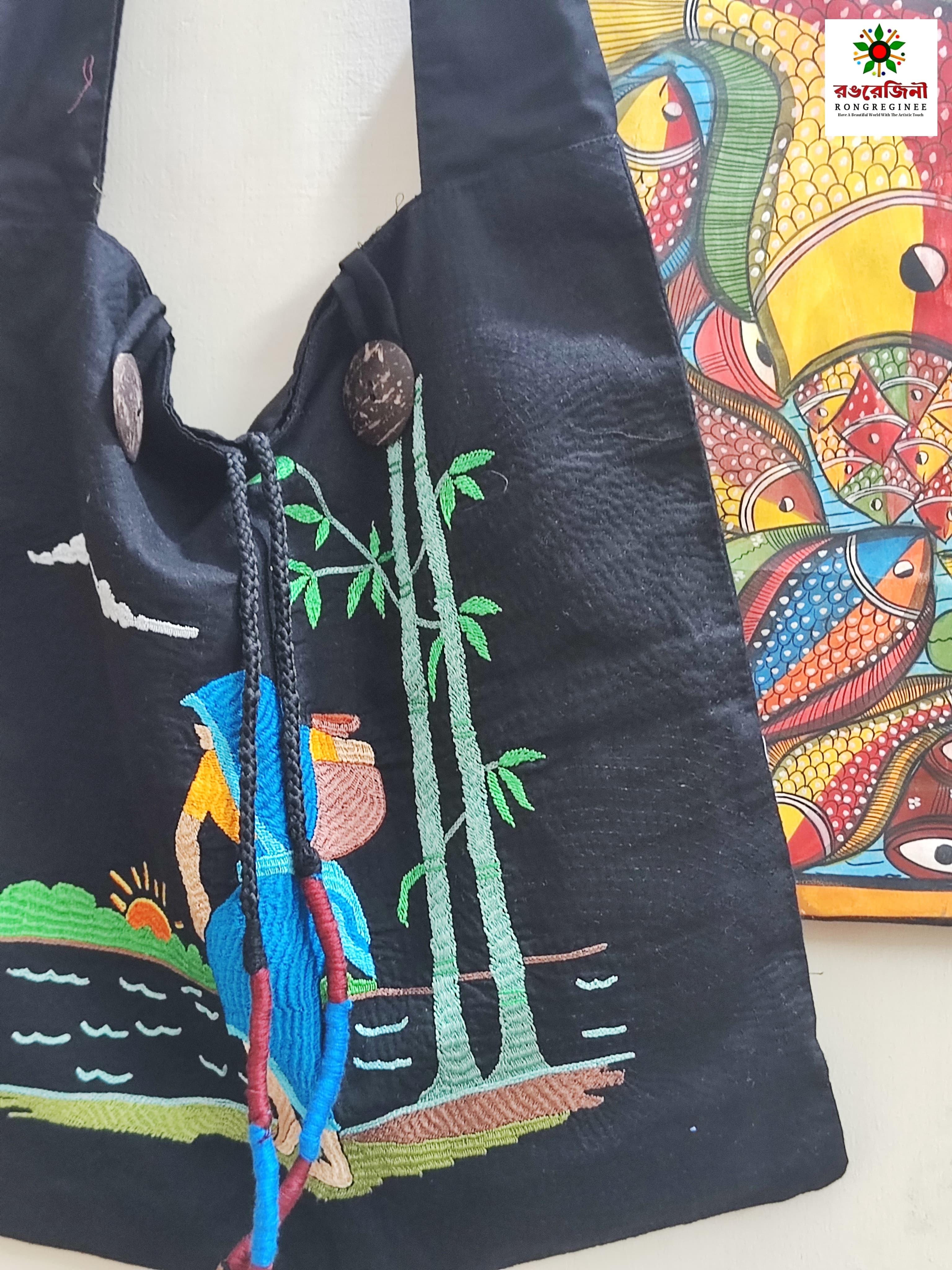 Add a touch of art and traditional to your everyday style with this beautifully handcrafted applique shoulder tote bag. Made with premium quality fabric, this bag showcases detailed hand stich artwork inspired by folk elements and nature. Each piece is carefully crafted by skilled artisans, making every bag unique and full of character.